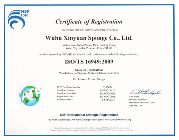 首先,通过运行TS16949质量体系有利于馨源公司成为专业海绵密封件和内饰件生产供应商,特别是能成为更多空调主机和汽车主机厂配套商。